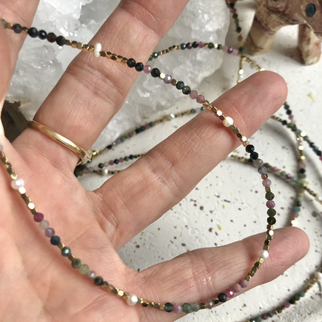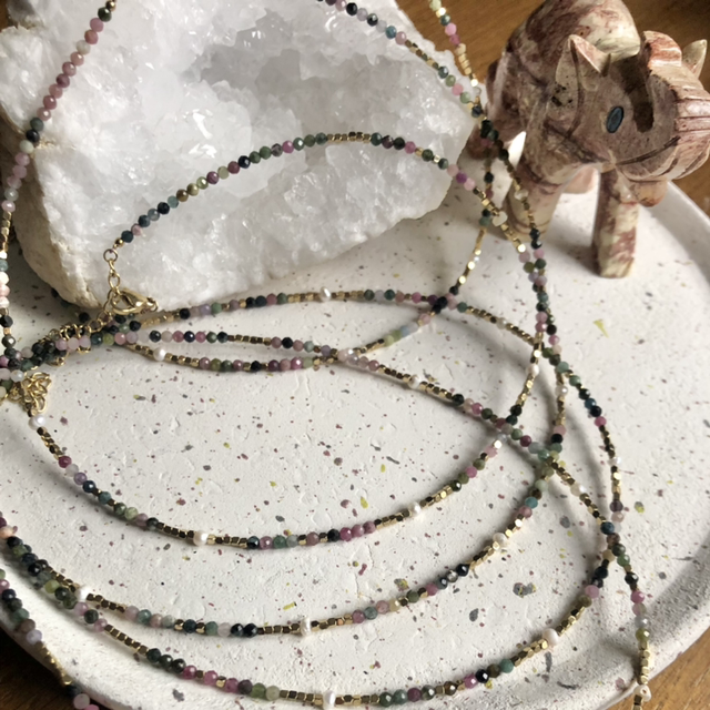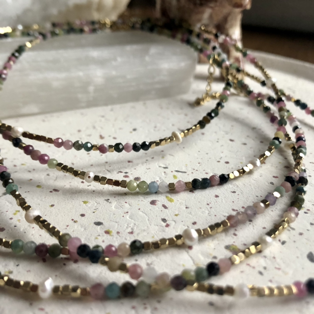 Collier fin en tourmaline de toutes les couleurs